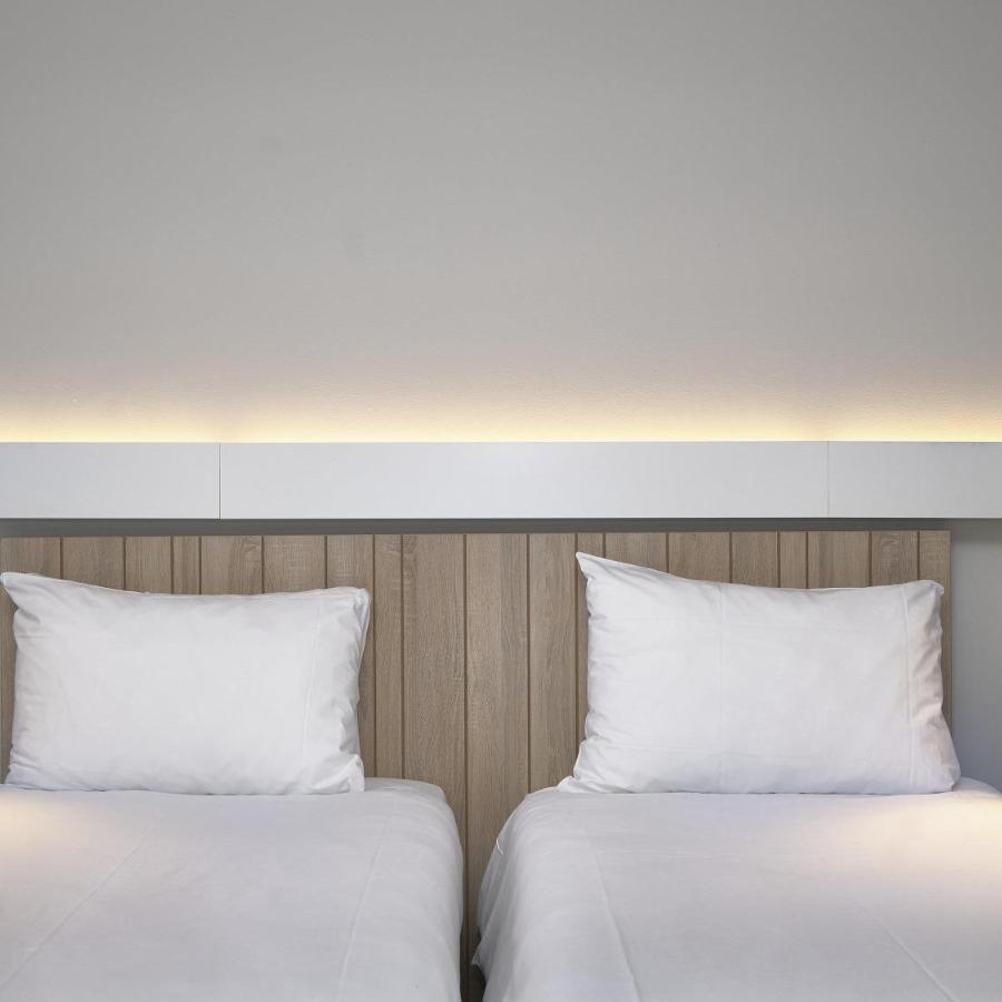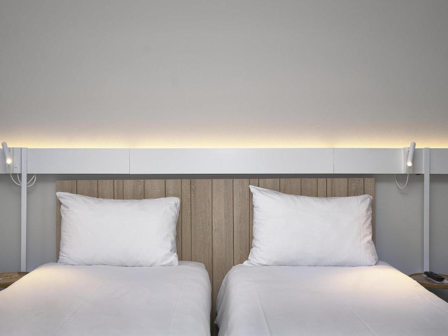 Las 59 habitaciones del establecimiento, todas climatizadas, ofrecen un espacio diseñado para el descanso y la eficiencia. Los equipamientos son simples pero bien elegidos: ropa de cama cómoda, baño privado con ducha, televisión de pantalla plana, escritorio y conexión Wi-Fi gratuita. El aislamiento acústico de las habitaciones contribuye a crear un ambiente de calma propicio para la relajación o el trabajo.
