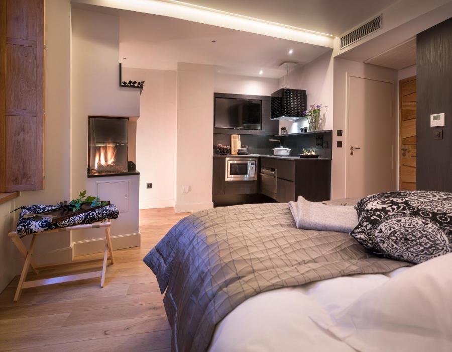 El confort se extiende a cada detalle. Encontrará en su apartamento una chimenea, un sistema de calefacción por suelo radiante, aire acondicionado regulable, una cama eléctrica de la marca André Renault, así como una cava de vinos surtida con caldos regionales. Una tableta conectada a un sistema de sonido Bose y una bandeja de bienvenida compuesta por productos locales completan los equipamientos sin ostentación.