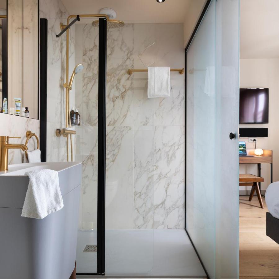 Chaque chambre prolonge cette impression de confort mesuré. Le parquet blond, les tissus naturels et les objets décoratifs sélectionnés avec soin créent une ambiance à la fois contemporaine et chaleureuse. Vous y trouverez des volumes justes, des éclairages étudiés et un mobilier qui allie utilité et élégance. Certaines chambres s’ouvrent sur un balcon discret, d’où l’on peut observer la vie du quartier sans en être troublé.