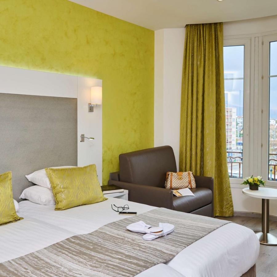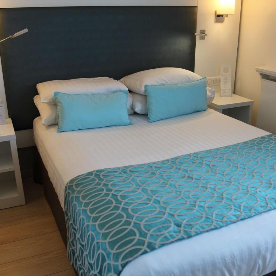 Derrière sa façade soignée, l’hôtel dévoile 55 chambres, toutes climatisées et insonorisées, réparties en plusieurs catégories adaptées à vos besoins. Leur décoration sobre et lumineuse, parfois ponctuée de couleurs plus franches ou de touches de bois, vous enveloppe dans une ambiance chaleureuse sans surcharge. Les chambres Classiques conviennent à une ou deux personnes avec un lit double confortable, tandis que les chambres Confort et Supérieures proposent plus d’espace et des configurations twin ou queen size. Pour un séjour prolongé ou un moment privilégié, les chambres Exécutive offrent des prestations plus généreuses, comme un kit bien-être avec peignoirs, chaussons et articles de toilette de qualité.