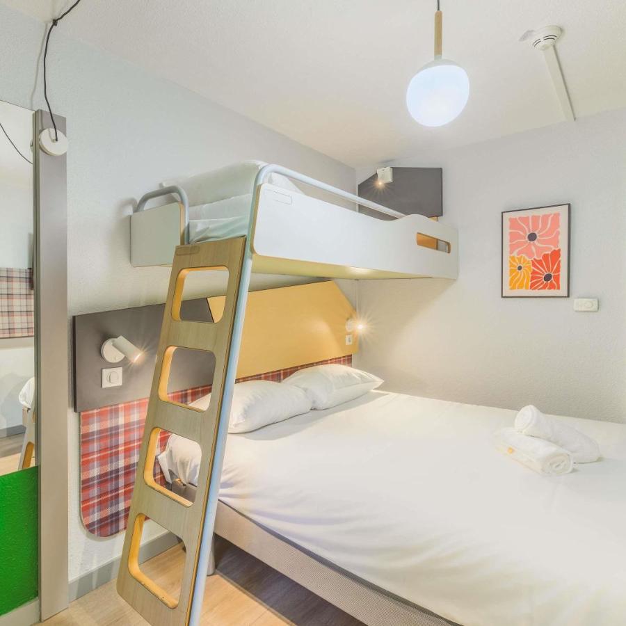 L’hôtel se compose de 49 chambres réparties en plusieurs catégories, toutes pensées pour offrir un repos confortable après une journée active. Literie douillette, climatisation réglable, télévision à écran plat et salle d’eau privative assurent un séjour sans contraintes. Certaines chambres disposent d’un lit superposé, d’autres donnent côté jardin. Des chambres communicantes sont disponibles pour les familles nombreuses, tandis que les personnes à mobilité réduite trouveront également des espaces adaptés.