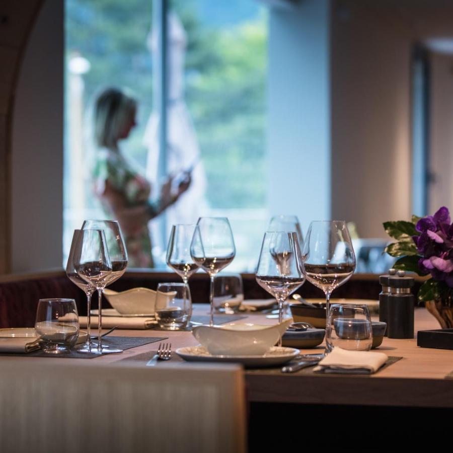 Dès le matin, la lumière entre à flots dans la salle du petit-déjeuner. Le pain encore chaud, les produits de saison, les options sans gluten : tout concourt à un début de journée apaisé. Vous pouvez aussi choisir l’intimité de votre chambre pour savourer votre café, face à l’aube sur les cimes ou au miroir du lac.