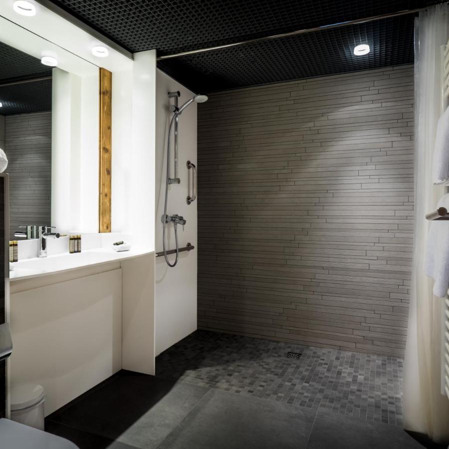 Vous accédez ensuite à votre chambre en empruntant un ascenseur silencieux. L’espace est généreux, parfaitement agencé. Chaque élément semble pensé pour allier confort et discrétion : literie moelleuse, bureau élégant, salle de bains spacieuse avec toilettes séparées, climatisation réglable, télévision à écran plat et rangements intégrés. Rien n’est superflu, rien ne manque.