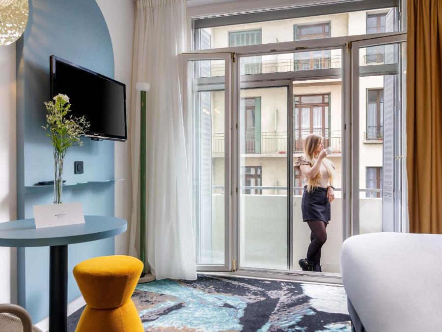 Les 39 chambres, réparties sur plusieurs catégories, offrent des superficies adaptées à différents besoins, de la chambre mansardée plus intimiste à la chambre Privilège, plus généreusement équipée. Les tons sont harmonieux, les lignes sobres, et l’ameublement bien choisi invite à se détendre dès l’arrivée. Certaines chambres bénéficient d’un balcon ou d’une terrasse, idéal pour une pause café au calme, avec les toits de la ville en perspective.